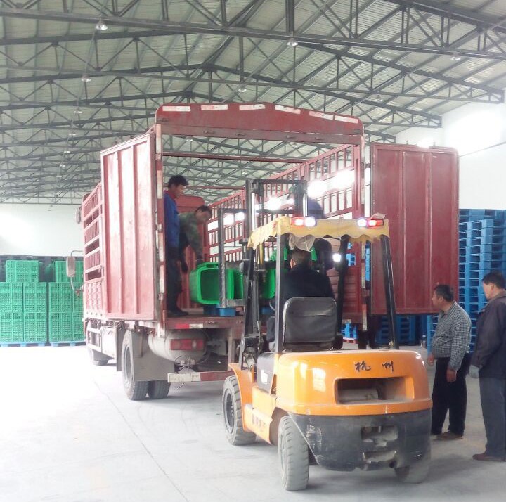 塑料垃圾桶装车发走