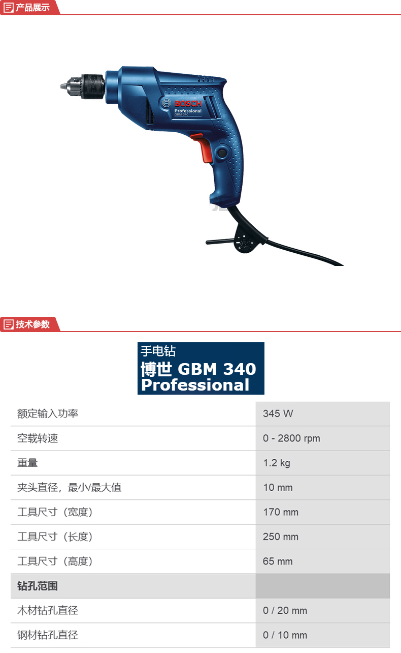 博世(BOSCH) 345W手電鉆產品型號: