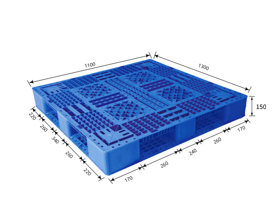 对于占地面积大平房货场,以水平运输为主的场合,若用手动托盘车则用单面的,若用机械叉车或电动叉车,用单面托盘和双面托盘都适合。如果用解析叉车进行码垛堆放的场合,托盘的下面和下部货物的上面相重合,可以选用双面规格的托盘较好。若用手动液压搬运车搬运则适合选用单面托盘,九脚、川字、田字都可以;若用电动叉车搬运,则单面托盘和双面托盘都适合;若用可自行的机动托盘搬运车搬运,则可选用底部没有连接条的九脚型单面托盘。